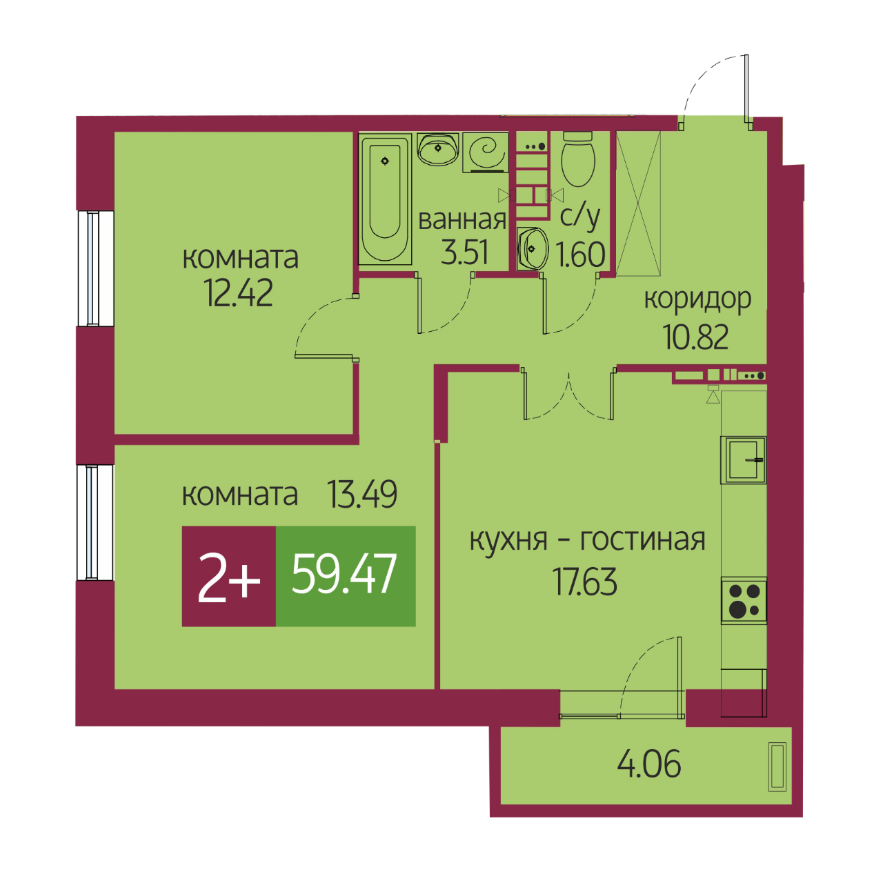 Площадь: 59.47 м² Высота потолков: 2.8 м Этаж: 7 Дом: ГП-1 Сдан в 4 кв 2021 Вид из окон: на заречную часть города, с балкона видна Набережная в районе моста Влюбленных С большой кухней: более 17 кв.м.