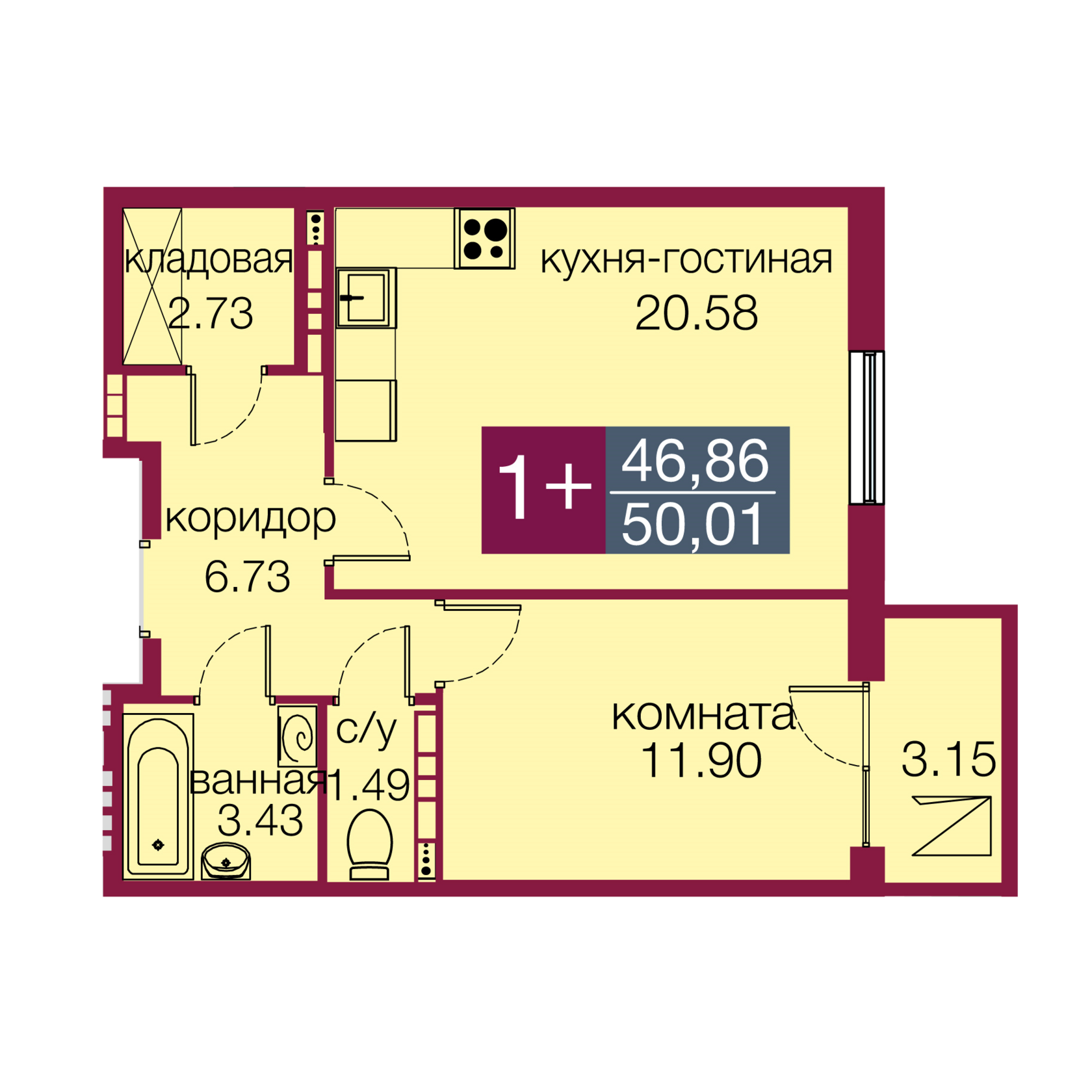 Площадь: 46.40 м² Высота потолков: 2.8 м Этаж: 7 Дом: ГП-1 Сдан в 4 кв 2021 Вид из окон: на ТРЦ ПА-НА-МА и заречную часть города С большой кухней: более 17 кв.м.